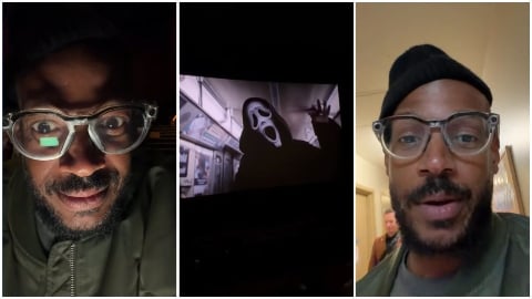 Il video condiviso su Instagram da Marlon Wayans è veramente divertente. L’attore e sceneggiatore entra in un cinema, si mette a sedere, guarda e riprende il trailer di Film spaventoso 6 e poi si riprende mentre commenta.