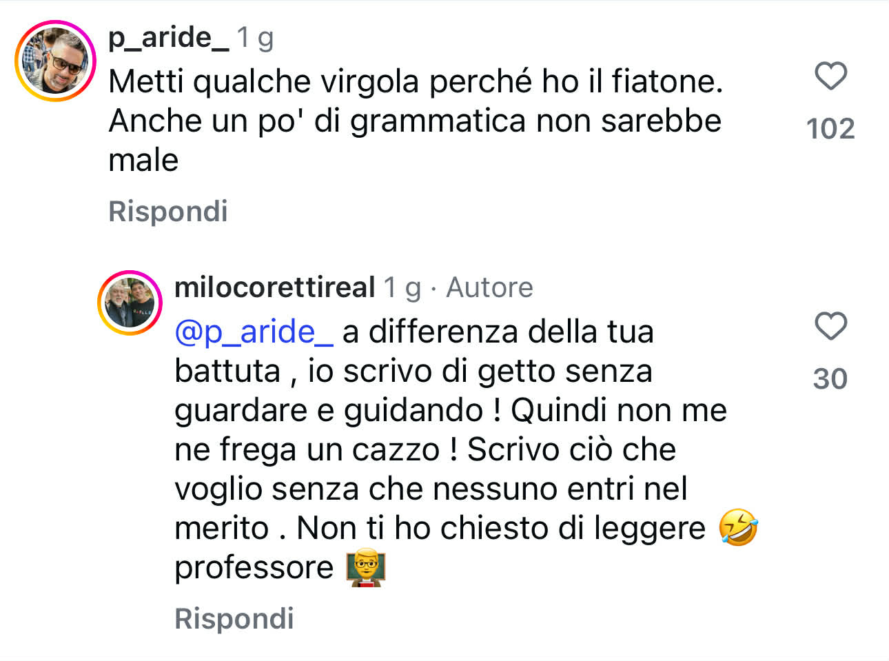 Milo Corettivincitore della settima edizione del Grande Fratelloha deciso di tornare alla carica contro il mondo dello spettacolo, commentando il caso Alfonso Signorini. Lo ha fatto con un post sgrammaticato e piuttosto sconclusionato, che ho dovuto sistemare. A sua discolpa, Coretti ha spiegato di averlo scritto mentre era al volante e stava guidando. Ehm, Polizia?!?! Ad ogni modo l’accusa è ben precisa: certe dinamiche per entrare al Grande Fratello ci sarebbero stati anche prima dell’arrivo di Alfonso Signorini.